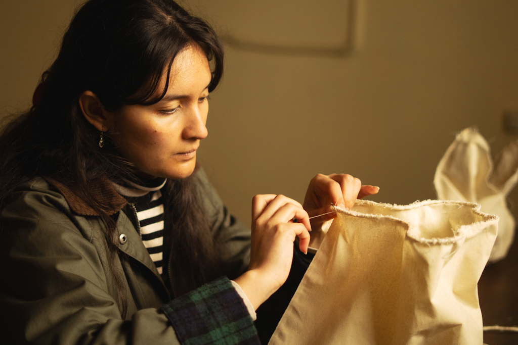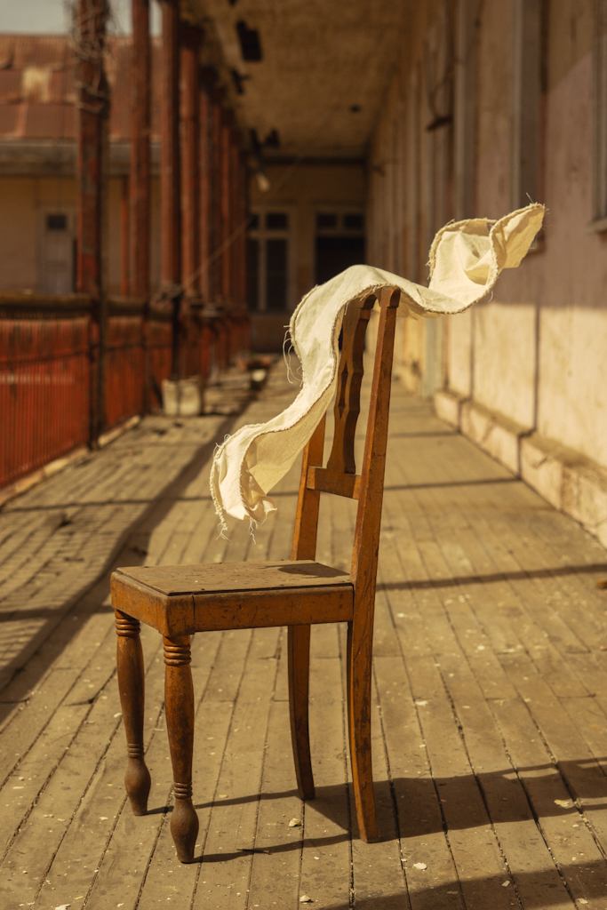 Corporalidades surge desde la observación del tejido como cuerpo vivo: una materia noble que deja de ser transportador de imágenes para convertirse en estructura. La tela deja de obedecer su rol de superficie y comienza a actuar como un organismo sensible, capaz de mantener su propia presencia para dialogar con el medio. A través de cortes, pliegues y tensiones, la tela comienza a sostenerse por sí misma, suspendida en el espacio como un organismo en equilibrio interactuando con el entorno que la acoge: Sala Knibily, espacio marcado por la memoria, el desgaste y la persistencia, cuyas maderas, muros y silencios dan cuenta de ello. La obra propone una relación entre fragilidad y persistencia, entre soporte y cuerpo. Las telas flotan, cuelgan y se repliegan, revelando las hilachas, arrugas y reversos que —generalmente ocultos— adquieren protagonismo. En ese gesto, el ensayo y error se transforman en un lenguaje que invita a percibir estas corporalidades como formas que sostienen su propia presencia.
